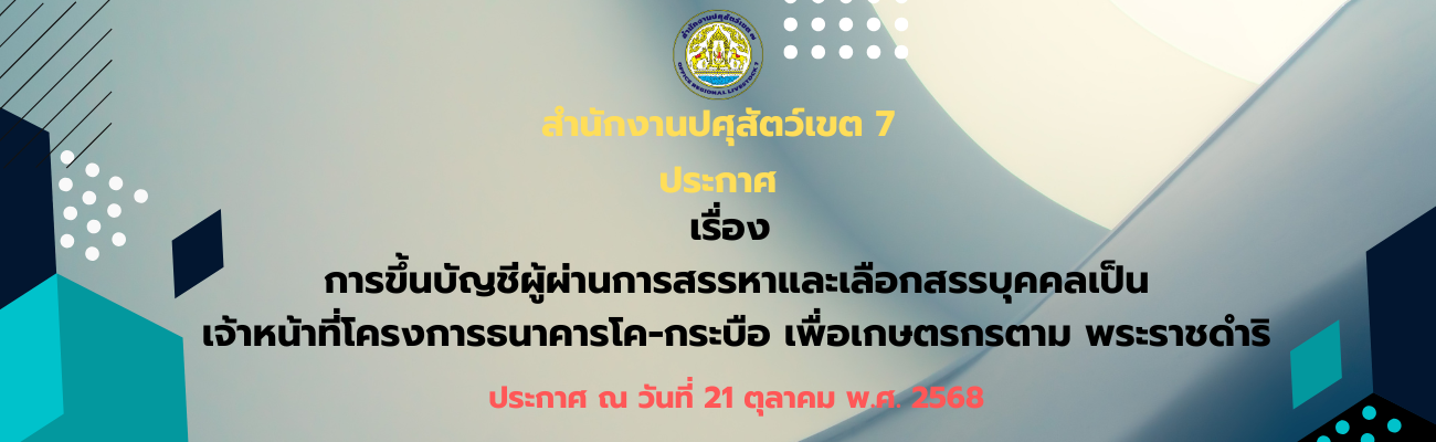 | คำสั่งสำนักงานปศุสัตว์เขต 7 ปี 2569 | 2568-10-01 |