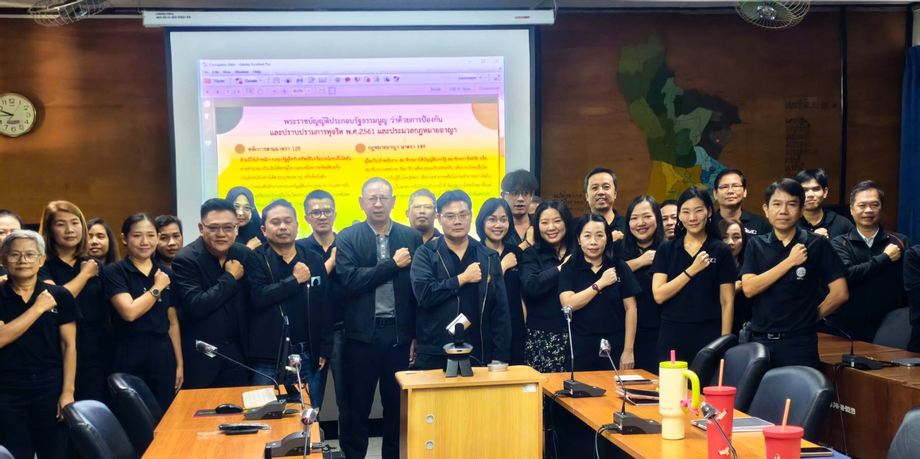 วันศุกร์ที่ 16 มกราคม 2569 เวลา 09.30 น. นายยุษฐิระ บัณฑุกุล ปศุสัตว์เขต 7 พร้อมด้วยผู้อำนวยการส่วน/ฝ่าย เจ้าหน้าที่สำนักงานปศุสัตว์เขต 7 จัดกิจกรรมต่อต้านการทุจริตและประพฤติมิชอบของสำนักงานปศุสัตว์เขต 7 ภายใต้แนวคิด "HERO OF THE TRUTH ร่วมหยุดคอร์รัปชัน" ร่วมกันต่อต้านการทุจริตคอร์รัปชันทุกรูปแบบอย่างจริงจัง รวมถึงการสร้างความตระหนักรู้แก่ข้าราชการ ลูกจ้างและพนักงานราชการ ในการไม่ทนต่อการทุจริตและประพฤติมิชอบ สร้างมาตรฐานการปฏิบัติราชการที่ใสสะอาด