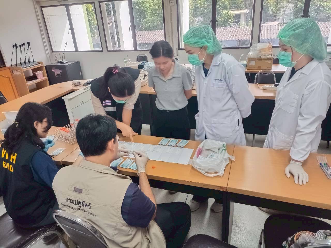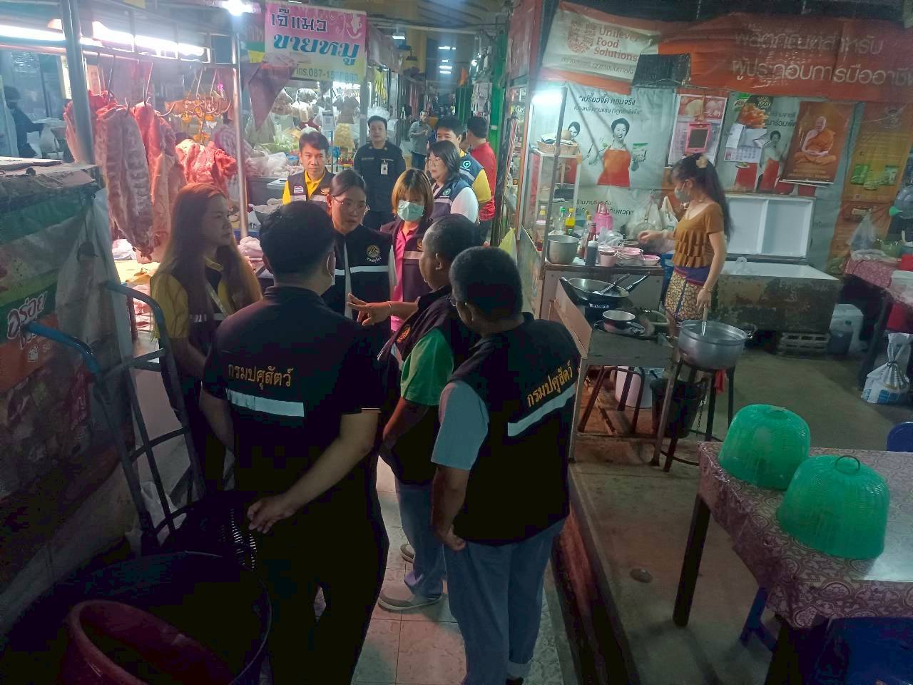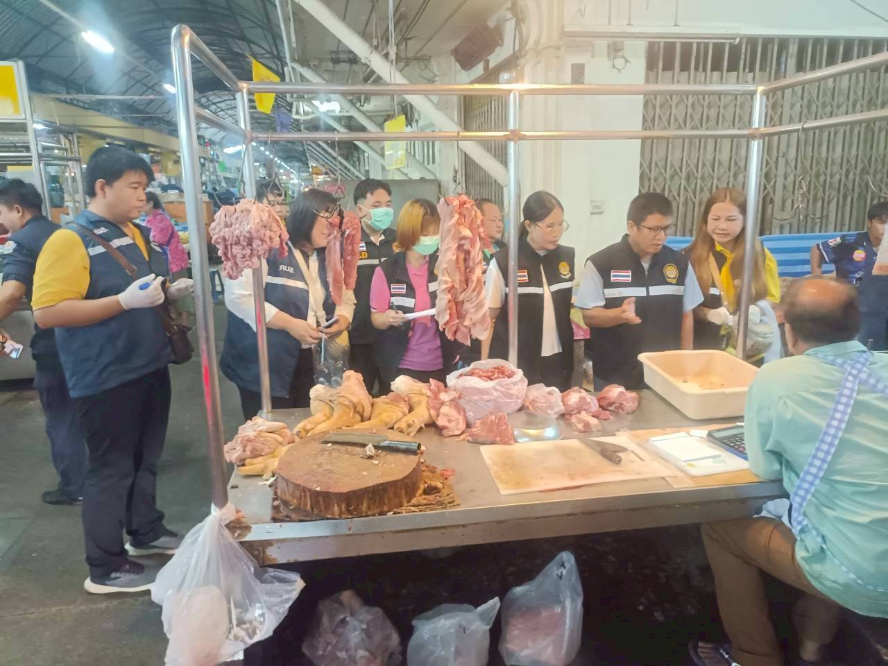 วันที่ 23 กันยายน 2568 นายสัตวแพทย์ยุษฐิระ บัณฑุกุล ปศุสัตวแพทย์เขต 7 มอบหมายให้ผู้อำนวยการ เจ้าหน้าที่ส่วนมาตรฐานการปศุสัตว์ สำนักงานปศุสัตว์เขต 7 ร่วมกับหน่วยงานที่เกี่ยวข้อง ประกอบด้วย เจ้าหน้าที่ศูนย์วิจัยและพัฒนาการสัตวแพทย์ภาคตะวันตก จังหวัดราชบุรี สำนักงานปศุสัตว์จังหวัดนครปฐม สำนักงานปศุสัตว์อำเภอเมืองนครปฐม ด่านกักกันสัตว์นครปฐม สำนักงานสาธารณสุขจังหวัดนครปฐม และเจ้าหน้าที่จากเทศบาลนครปฐม ลงพื้นที่ปฏิบัติงานตั้งแต่เวลา 04.30 น. เพื่อสุ่มตรวจเฝ้าระวังการใช้สารเร่งเนื้อแดงในเนื้อสัตว์ที่จำหน่ายในพื้นที่ ตลาดทรัพย์สินส่วนพระมหากษัตริย์ (ตลาดบน–ตลาดล่าง) และตลาดน้อมเกล้า จังหวัดนครปฐม