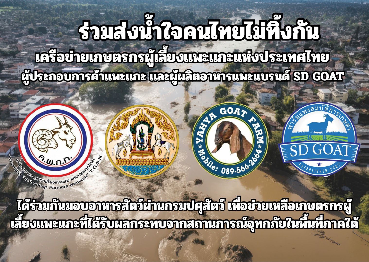ร่วมกันส่งมอบอาหารสัตว์ผ่านกรมปศุสัตว์ เพื่อช่วยเหลือเกษตรกรผู้เลี้ยงแพะแกะที่ได้รับผลกระทบจากสถานการณ์อุทกภัยในพื้นที่ภาคใต้ ณ บจก.หนองบัวฟีดมิลล์ จังหวัดราชบุรี