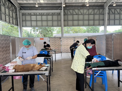 วันที่ 11 ธันวาคม 2568 นายสมมาท ขุนบรรเทา สัตวแพทย์อาวุโส รักษาราชการแทนปศุสัตว์จังหวัดกาญจนบุรี มอบหมายให้กลุ่มพัฒนาสุขภาพสัตว์ ร่วมกับสำนักงานปศุสัตว์อำเภอเมืองกาญจนบุรี ลงพื้นที่ออกหน่วยทำหมันสุนัขและแมว ตามโครงการสัตว์ปลอดโรค คนปลอดภัย จากโรคพิษสุนัขบ้า ตามพระราชปณิธานศาสตราจาย์ ดร.สมเด็จพระเจ้าน้องนางเธอ เจ้าฟ้าจุฬาภรณวลัยลักษณ์ อัครราชกุมารี กรมพระศรีสวางควัฒน วรขัตติยราชนารี ณ ศาลาเอนกประสงค์กองพลทหารราบที่ ๙ ตำบลลาดหญ้า อำเภอเมืองกาญจนบุรี จังหวัดกาญจนบุรี ผลการปฏิบัติงาน ผ่าตัดทำหมันและฉีดวัคซีนป้องกันโรคพิษสุนัขบ้า จำนวน 30 ตัว แยกเป็น สุนัขเพศผู้ 14 ตัว สุนัขเพศเมีย 16 ตัว