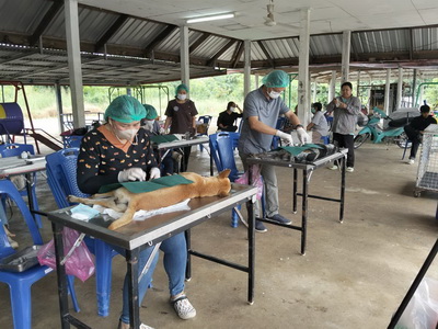 วันที่ 13 พฤศจิกายน 2568 นายสมมาท ขุนบรรเทา สัตวแพทย์อาวุโส รักษาราชการแทน ปศุสัตว์จังหวัดกาญจนบุรี มอบหมายให้ นางสาววีรภัสรา แก้วเกษ หัวหน้ากลุ่มพัฒนาสุขภาพสัตว์ พร้อมด้วย นางสาวธาราทิพย์ พุ่มระชัฎร์ นายสัตวแพทย์ชำนาญการ รักษาราชการแทน ปศุสัตว์อำเภอหนองปรือ เจ้าหน้าที่สำนักงานปศุสัตว์อำเภอหนองปรือ อำเภอเลาขวัญ และอำเภอบ่อพลอย ร่วมกับ เทศบาลตำบลหนองปลาไหล ลงพื้นที่ออกหน่วยทำหมันสุนัขและแมว ตามโครงการสัตว์ปลอดโรค คนปลอดภัย จากโรคพิษสุนัขบ้า ตามพระราชปณิธานศาสตราจาย์ ดร.สมเด็จพระเจ้าน้องนางเธอ เจ้าฟ้าจุฬาภรณวลัยลักษณ์ อัครราชกุมารี กรมพระศรีสวางควัฒน วรขัตติยราชนารี ณ ศาลาเอนกประสงค์บ้านห้วยหวาย หมู่ 3 ตำบลหนองปลาไหล อำเภอหนองปรือ จังหวัดกาญจนบุรี