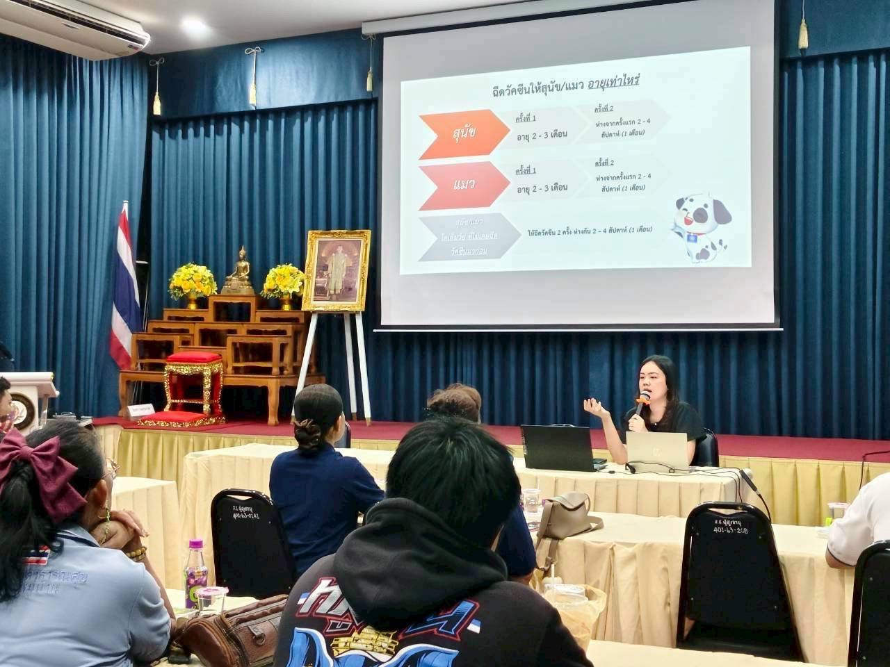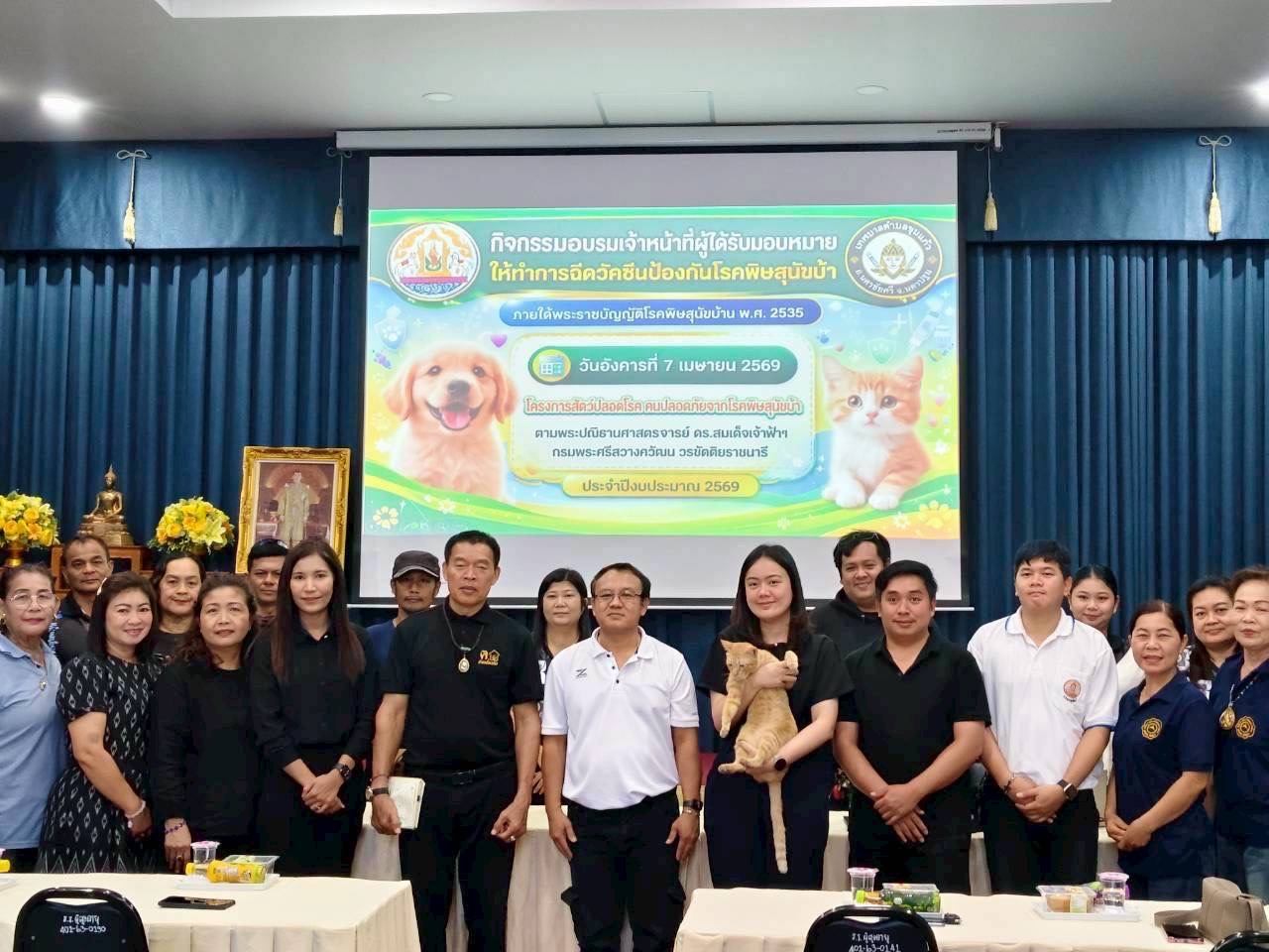 วันอังคารที่ 7 เมษายน 2569 นายสัตวแพทย์วรากร จิตรหลัง ปศุสัตว์จังหวัดนครปฐม มอบหมายให้สำนักงานปศุสัตว์อำเภอนครชัยศรี ร่วมกับเทศบาลตำบลขุนแก้ว อำเภอนครชัยศรี จังหวัดนครปฐม จัดโครงการฝึกอบรมเพื่อสร้างและพัฒนาอาสาปศุสัตว์ ประจำปี 2569 ภายใต้โครงการสัตว์ปลอดโรค คนปลอดภัยจากโรคพิษสุนัขบ้า โดยมี สพ.ญ.ภัทราพร ลิมปนเวทยานนท์ นายสัตวแพทย์ปฏิบัติการ กลุ่มพัฒนาสุขภาพสัตว์ สำนักงานปศุสัตว์จังหวัดนครปฐม เป็นวิทยากรบรรยายให้ความรู้ และมีอาสาเข้ารับการฝึกอบรม จำนวน 20 ราย