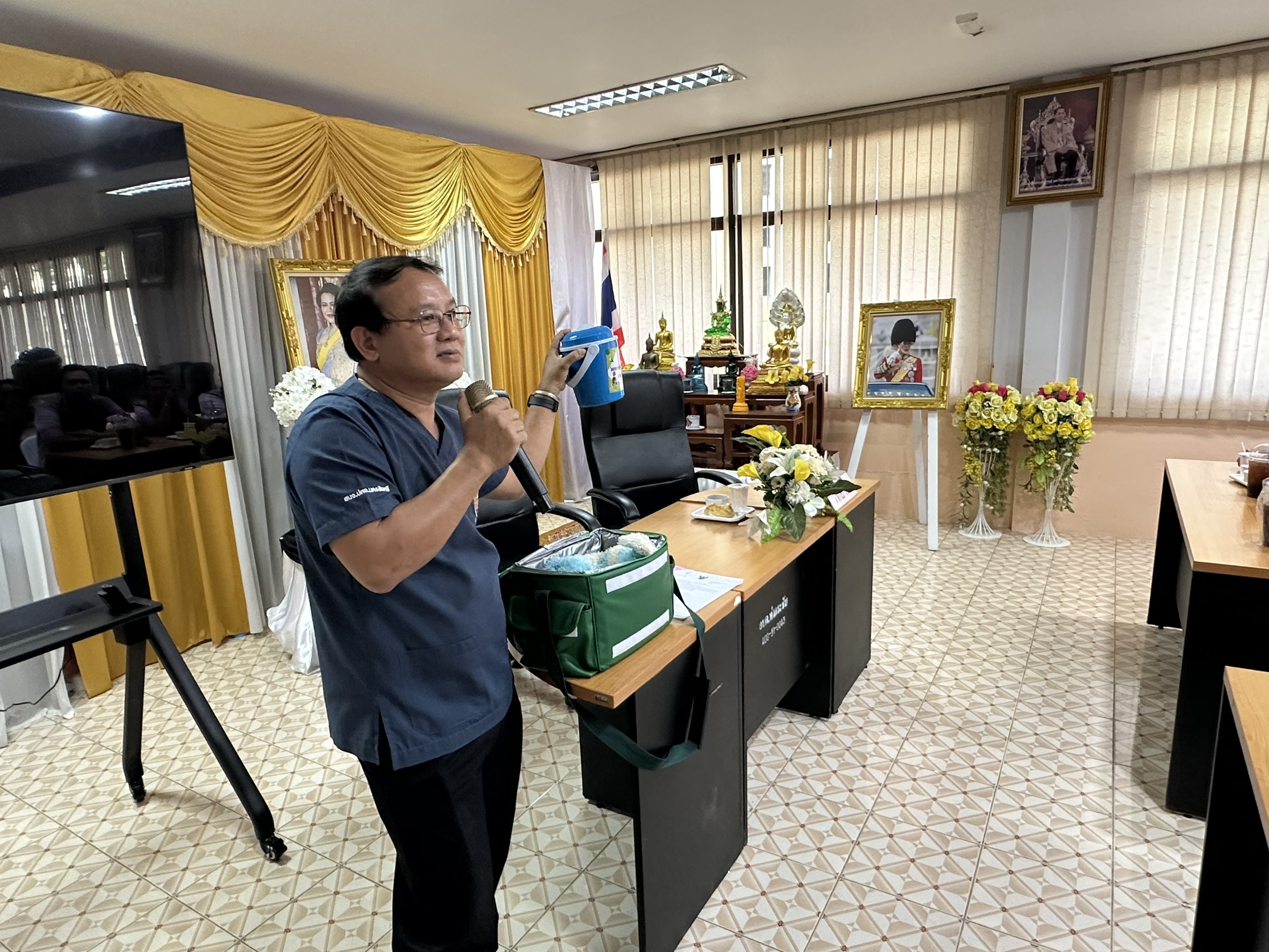 วันศุกร์ที่ 17 เมษายน 2569 นายสัตวแพทย์วรากร จิตรหลัง ปศุสัตว์จังหวัดนครปฐม มอบหมายให้สำนักงานปศุสัตว์อำเภอนครชัยศรี ร่วมกับองค์การบริหารส่วนตำบลท่ากระชับ อำเภอนครชัยศรี จังหวัดนครปฐม จัดโครงการฝึกอบรมเพื่อสร้างและพัฒนาอาสาปศุสัตว์ ประจำปี 2569 ภายใต้โครงการสัตว์ปลอดโรค คนปลอดภัยจากโรคพิษสุนัขบ้า โดยมี นายอรัญ ชมภูพันธ์ ปศุสัตว์อำเภอนครชัยศรี เป็นวิทยากรบรรยายให้ความรู้ และมีอาสาเข้ารับการฝึกอบรม จำนวน 18 ราย