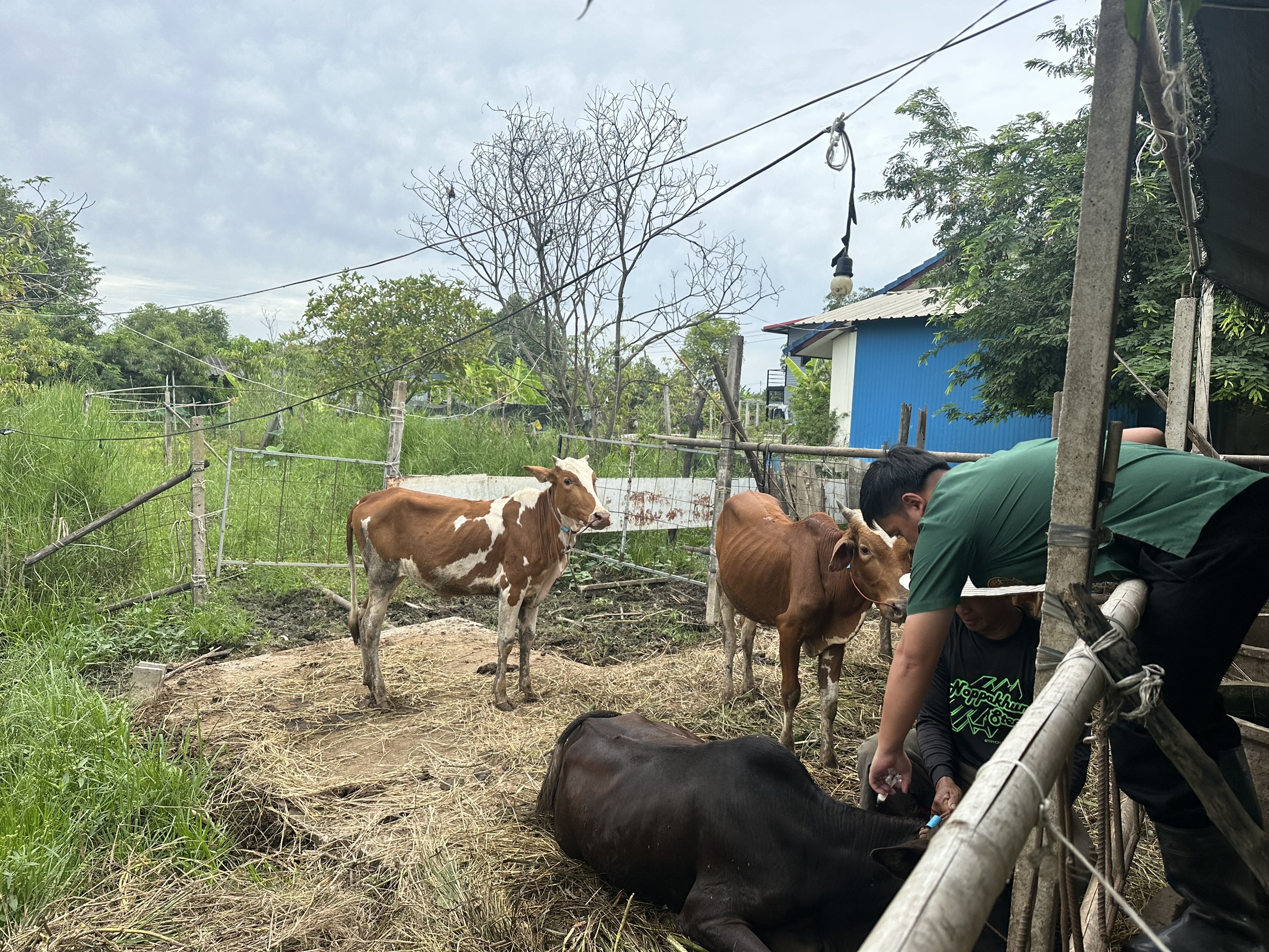 วันศุกร์ที่ 7 พฤศจิกายน 2568 สำนักงานปศุสัตว์จังหวัดนครปฐม โดยสำนักงานปศุสัตว์อำเภอนครชัยศรี ดำเนินการฉีดวัคซีนป้องกันโรคปากและเท้าเปื่อย ให้กับโคในพื้นที่ หมู่ 1 หมู่ 2 หมู่ 3 และหมู่ 4 ต.โคกพระเจดีย์ อ.นครชัยศรี จ.นครปฐม ตามโครงการรณรงค์ฉีดวัคซีนป้องกันโรคปากเท้าเปื่อยในโคเนื้อ กระบือ แพะ แกะ และการทำลายเชื้อโรคในพื้นที่เสี่ยง รอบที่ 1 ประจำปีงบประมาณ พ.ศ.2569