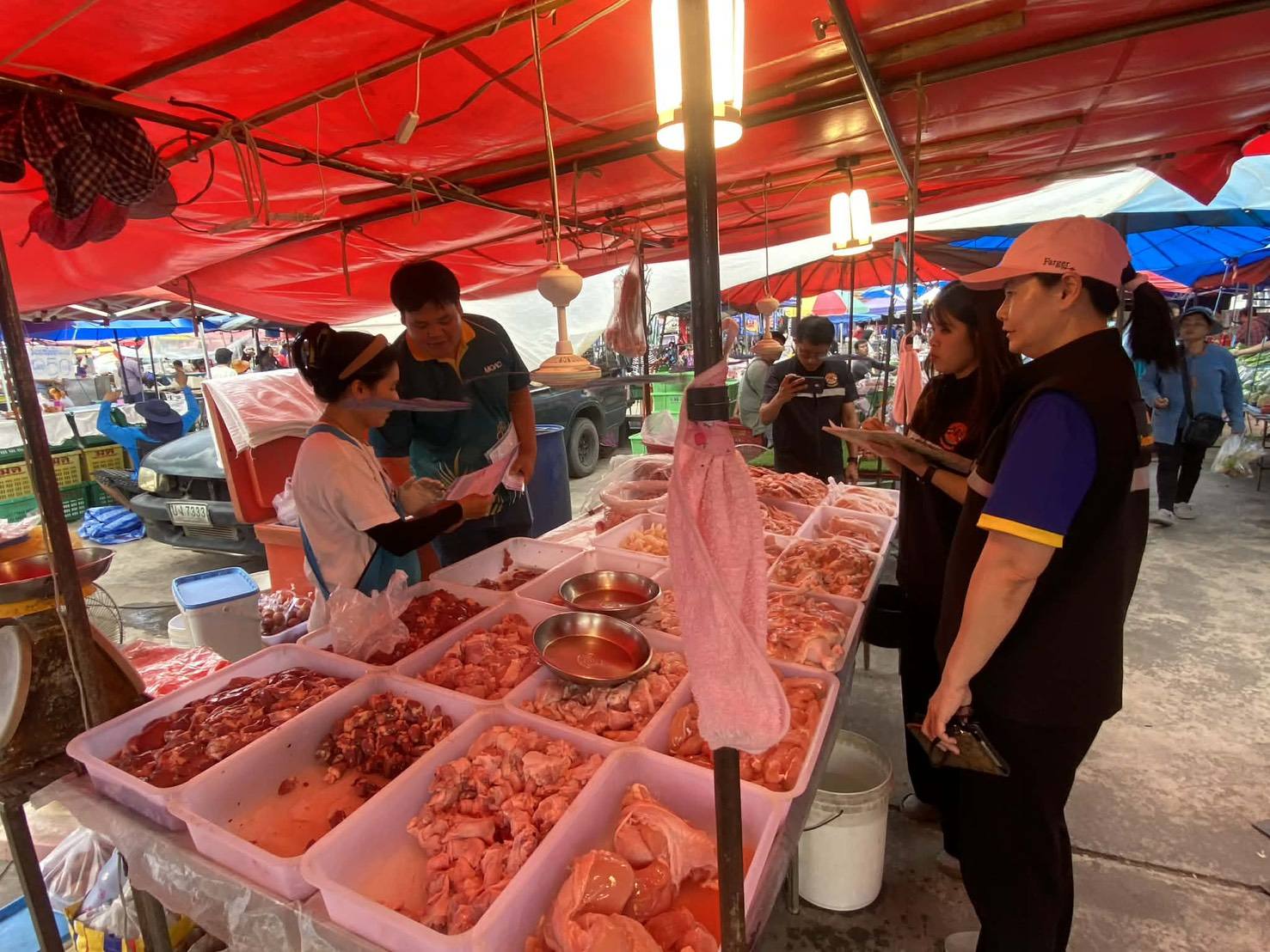 วันที่ 11 มีนาคม 2569 เวลา 15:00 น. นายนพคุณ คล้ายพันธ์ ปศุสัตว์จังหวัดสมุทรสงคราม มอบหมายให้ สัตวแพทย์หญิงศิรินทร์ทิพย์ วนาประเสริฐศักดิ์ นายสัตวแพทย์ชำนาญการพิเศษ นายนันทชัย แล่เพ็ชร ปศุสัตว์อำเภอบางคนที นายชนาสิน ภักดีโต นายสัตวแพทย์ปฏิบัติการ ปฏิบัติราชการในภาระหน้าที่ของปศุสัตว์อำเภออัมพวา เจ้าหน้าที่กลุ่มพัฒนาสุขภาพสัตว์ พร้อมด้วยจ้างเหมาอำเภออัมพวา ลงพื้นที่ประชาสัมพันธ์การขออนุญาตการค้าสัตว์หรือซากสัตว์(ร.10) ณ ตลาดนัดวัดคู้ธรรมสถิตย์วราราม ต.บ้านปรก อ.เมืองสมุทรสงคราม เพื่อประชาสัมพันธ์การขออนุญาตการค้าสัตว์หรือซากสัตว์(ร.10) พร้อมให้คำแนะนำทั้งนี้จะได้ดำเนินการตรวจติดตามต่อไป