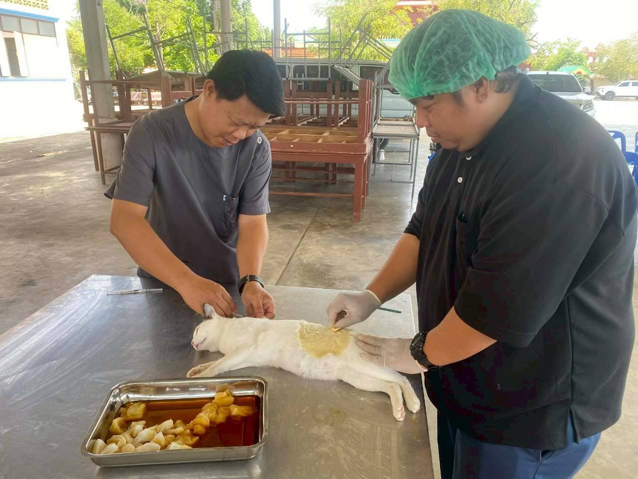 "สำนักงานปศุสัตว์จังหวัดสมุทรสงครามร่วมกับองค์การบริหารส่วนตำบลท้ายหาด ทำหมันลดประชากรสุนัขและแมวทั้งมีเจ้าของและไม่มีเจ้าของ ประจำปีงบประมาณ 2569"