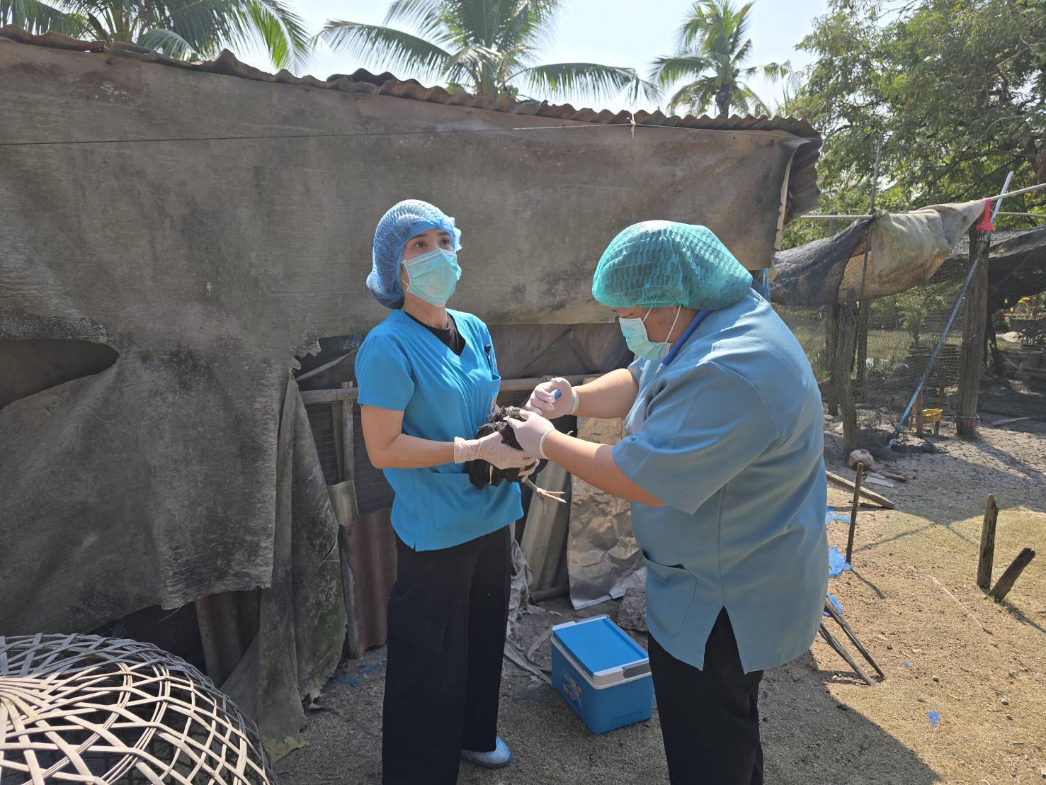วันอังคาร ที่ 8 มกราคม 2569 เวลา 13.00 น. นายฉัตรชัย ประทุมมาลย์ ปศุสัตว์จังหวัดสมุทรสาคร มอบหมายให้ เจ้าหน้าที่กลุ่มพัฒนาสุขภาพสัตว์ สำนักงานปศุสัตว์จังหวัดสมุทรสาคร เจ้าหน้าที่อำเภอบ้านแพ้ว ลงพื้นที่ทำวัคซีนป้องกันโรคนิวคาสเซิลและหลอดลมอักเสบติดต่อในไก่พื้นเมือง ในพื้นที่ตำบลสวนส้ม และตำบลอำแพง อำเภอบ้านแพ้ว จังหวัดสมุทรสาคร