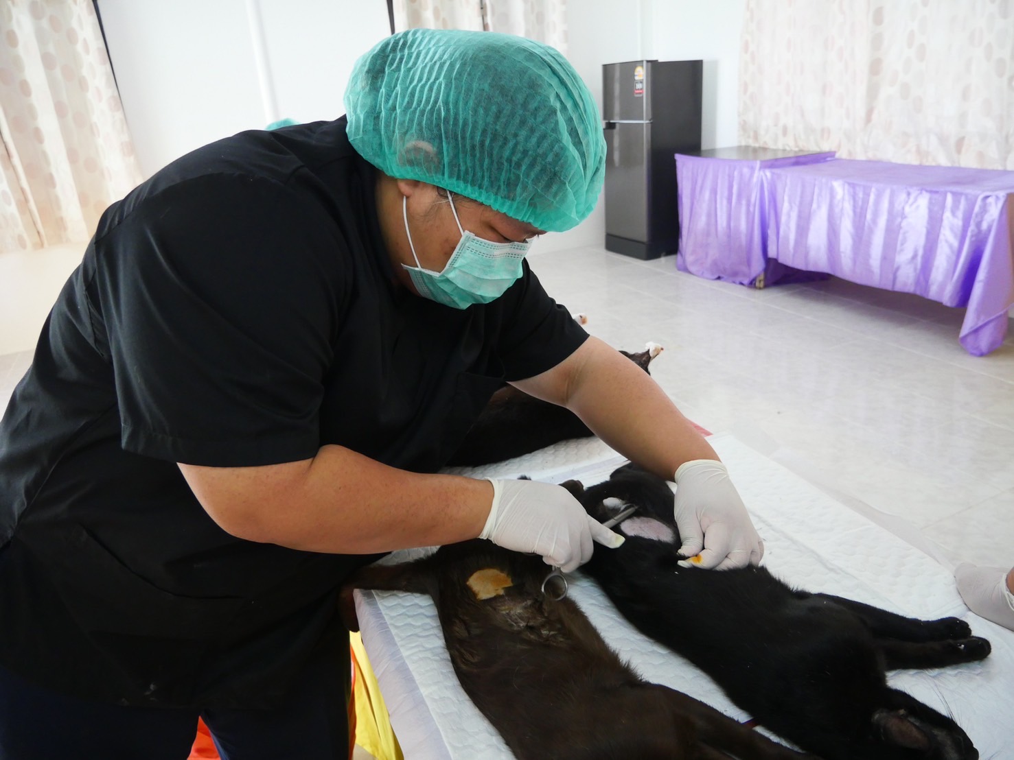 ผลการดำเนินงานผ่าตัดทำหมันและฉีดวัคซีนป้องกันโรคพิษสุนัขบ้าทั้งสิ้น 7 ตัว แบ่งเป็นแมวเพศผู้ 2 ตัว แมวเพศเมีย 3 ตัว และสุนัขเพศผู้ 1 ตัว