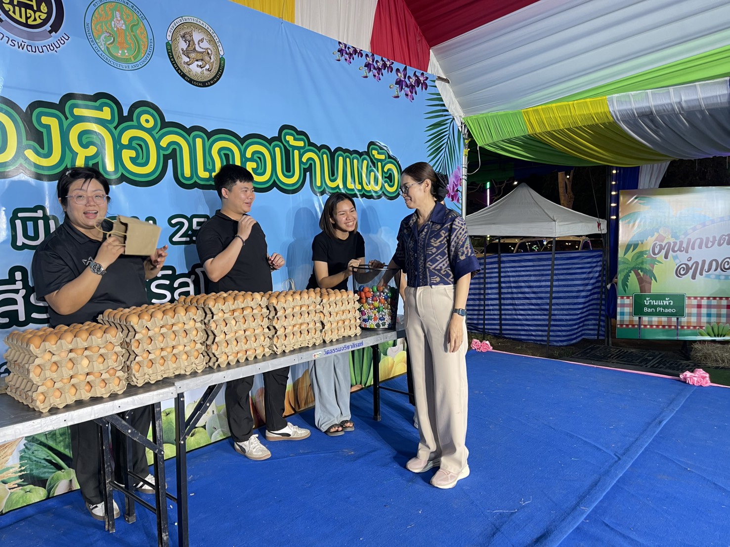 วันจันทร์ที่ 9 มีนาคม พ.ศ. 2569 เวลา 18.30น. นายนันทศักดิ์ มุสิกศิลป์ นายสัตวแพทย์ชำนาญการพิเศษ หัวหน้ากลุ่มพัฒนาสุขภาพสัตว์ สำนักงานปศุสัตว์จังหวัดสมุทรสาคร รักษาราชการแทนปศุสัตว์อำเภอบ้านแพ้ว มอบหมายให้นางพัทยา ชลชาญกิจ เจ้าพนักงานสัตวบาลเข้าร่วมกิจกรรม “ ล้วงลับจับไข่ ”ครั้งที่ 2/2569 ในงานเกษตรและของดีอำเภอบ้านแพ้ว โดยมีนางสาวภารดี เผือกโสภา นายอำเภอบ้านแพ้วเป็นประธานเปิดงาน ณ ลานงานเกษตรวัดหลักสี่ราษฎร์สโมสร อำเภอบ้านแพ้ว จังหวัดสมุทรสาคร