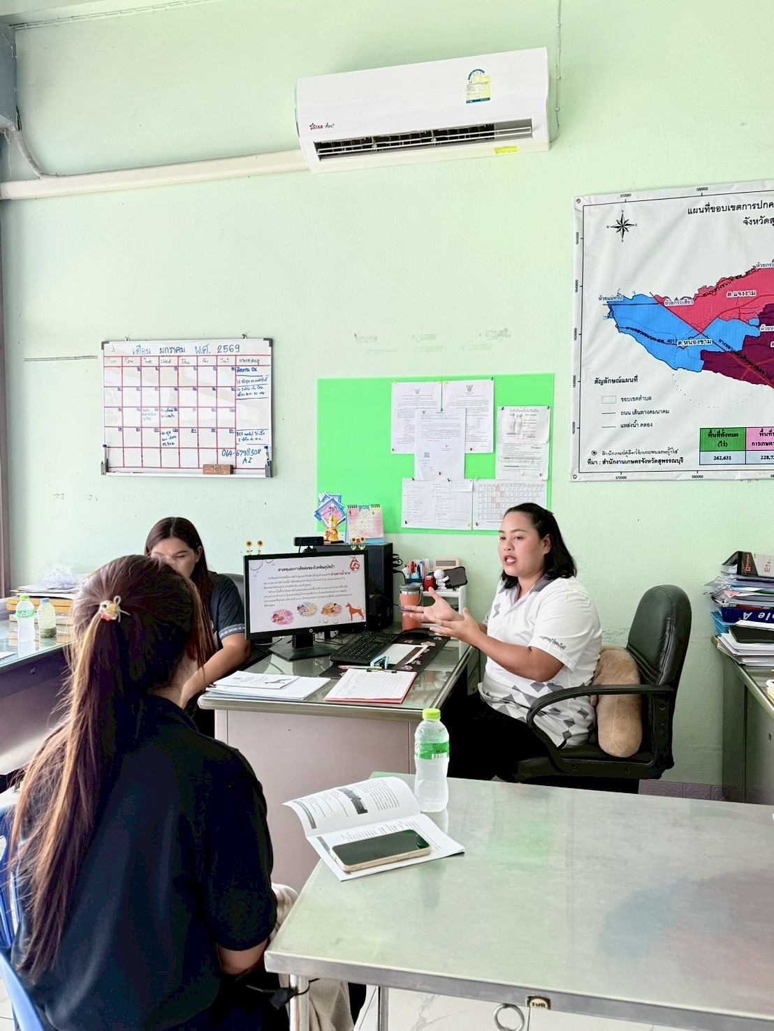 วันที่ 20 มกราคม 2569 นายชัชชาย เต็งหงษ์เจริญ ปศุสัตว์จังหวัดสุพรรณบุรี มอบหมายให้ นายปราสาท ศรีโมรา ปศุสัตว์อำเภอหนองหญ้าไซ พร้อมด้วยเจ้าหน้าที่ ดำเนินการจัดฝึกอบรมอาสาปศุสัตว์ด้านโรคพิษสุนัขบ้า ปีงบประมาณ พ.ศ. 2569 ภายใต้แผนยุทธศาสตร์การดำเนินโครงการสัตว์ปลอดโรค คนปลอดภัยจากโรคพิษสุนัขบ้า ตามพระปณิธาน ศาสตราจารย์ ดร.สมเด็จเจ้าฟ้าฯ กรมพระศรีสวางควัฒน วรขัติยราชนารี จำนวน 3 ราย ณ สำนักงานปศุสัตว์อำเภอหนองหญ้าไซ จังหวัดสุพรรณบุรี เพื่อสร้างและพัฒนาศักยภาพอาสาฯ ให้มีความรู้ทักษะในการเฝ้าระวัง ป้องกันและควบคุมโรคพิษสุนัขบ้าในระดับพื้นที่ ผ่านการถ่ายทอดความรู้และเทคนิคการฉีดวัคซีน ทั้งภาคทฤษฎีและปฏิบัติ ส่งเสริมการฉีดวัคซีนแก่สัตว์เลี้ยง และใช้เป็นกำลังหลักในการประชาสัมพันธ์ สำรวจข้อมูลสัตว์เพื่อลดอุบัติการณ์โรค
