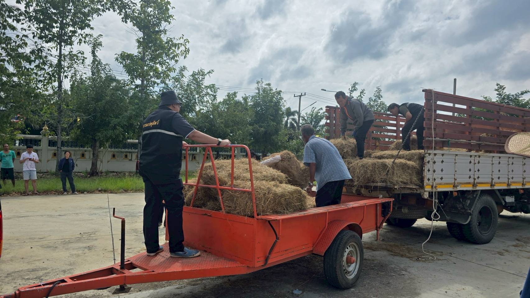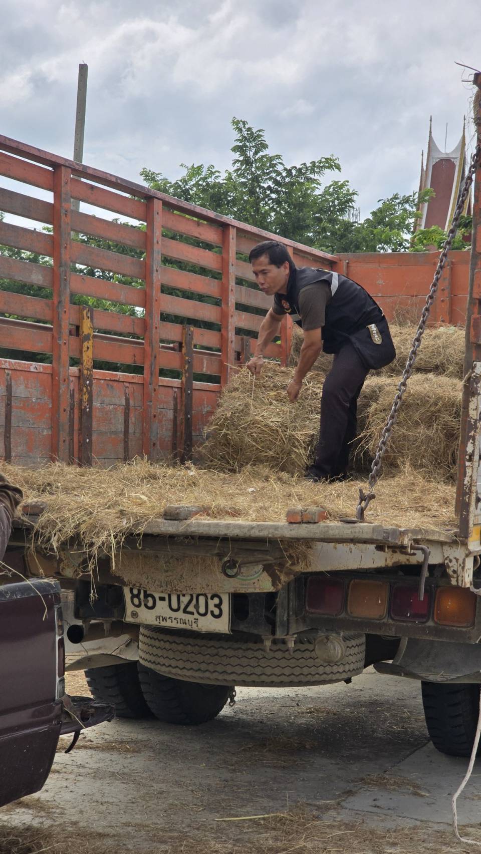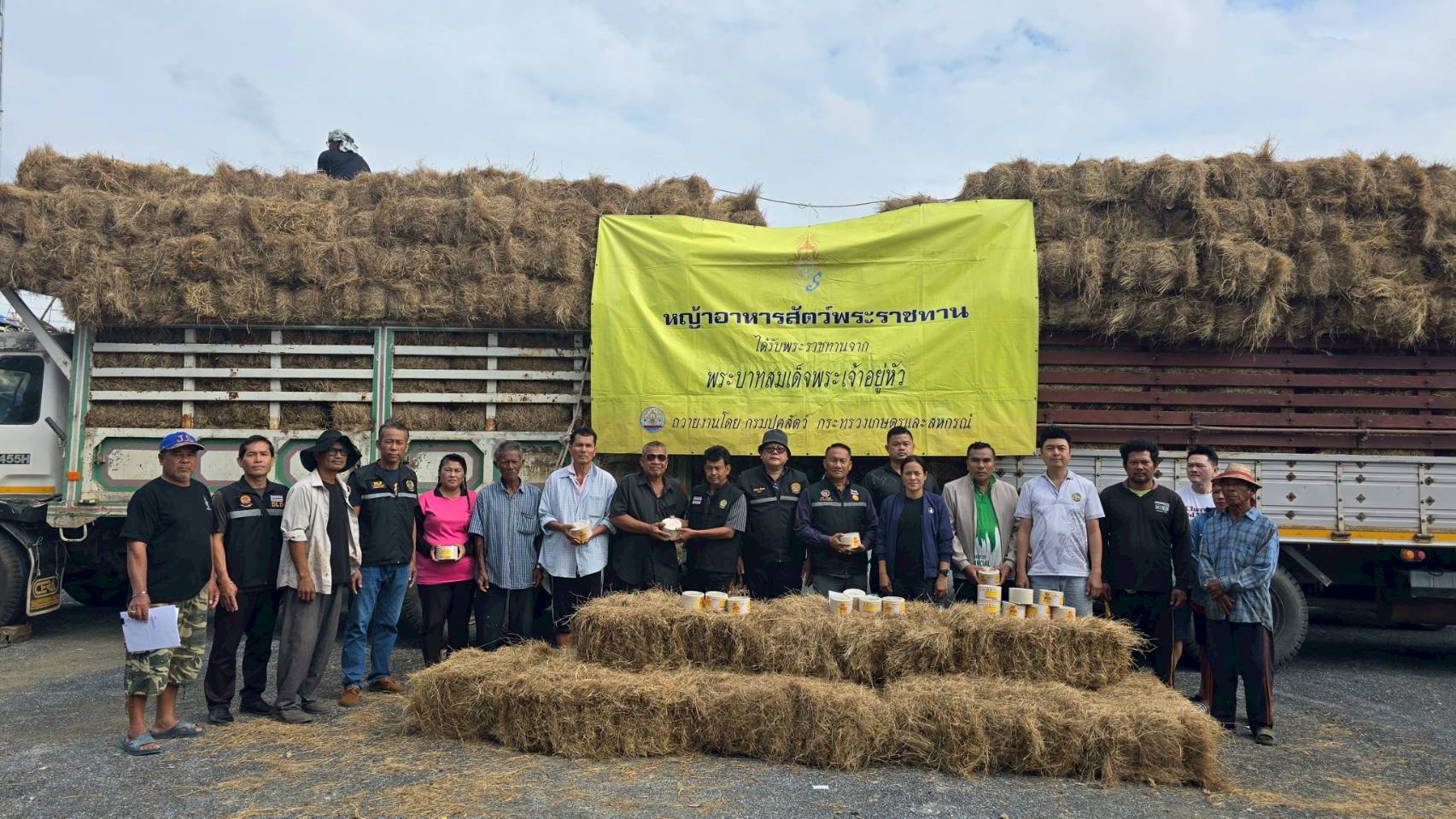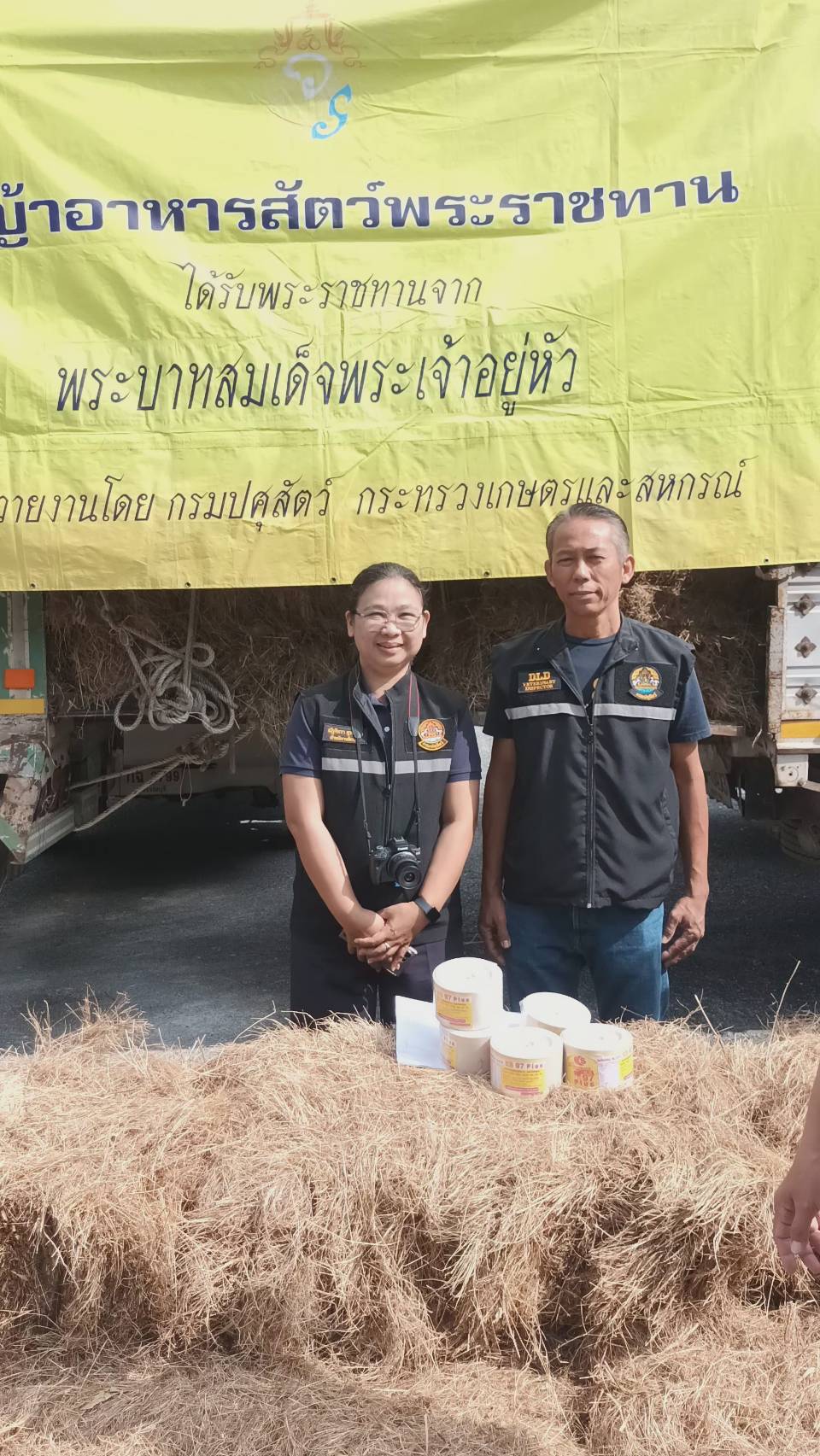 วันพุธที่ 19 พฤศจิกาย น2568 นายชัชชาย เต็งหงษ์เจริญ ปศุสัตว์จังหวัดสุพรรณบุรี มอบหมายให้นายชยวัฒน์ กลิ่นลอย หัวหน้ากลุ่มยุทธศาตร์และสารสนเทศการปศุสัตว์ และนายธีระพงษ์ จริยารังษีโรจน์ ปศุสัตว์อำเภออู่ทอง พร้อมด้วยนายณรงค์ ศรีเทพ ผู้อำนวนการศูนย์วิจัยและพัฒนาอาหารสัตว์สุพรรณบุรี และเจ้าหน้าที่ผู้เกี่ยวข้อง ร่วมส่งมอบเสบียงสัตว์พระราชทาน หญ้าแห้ง จำนวน 10,000 กิโลกรัม (500 ฟ่อน) และแร่ธาตุก้อน เพื่อช่วยเหลือเกษตรกรผู้ประสบภัยพิบัติอุทกภัย ในพื้นที่ ต.กระจัน ต.ยุ้งทะลาย ต.อู่ทอง และ ต.เจดีย์ อ.อู่ทอง จ.สุพรรณบุรี จำนวน 20 ราย โคเนื้อ รวม 284 ตัว ณ วัดจันทราวาส ม.2 ต.กระจัน อ.อู่ทอง จ.สุพรรณบุรี พร้อมเยี่ยมเยียนให้คำแนะนำการดูแลสุขภาพสัตว์เบื้องต้น โดยเกษตรกรมีความพึงพอใจเป็นอย่างมากที่ได้รับการช่วยเหลือในครั้งนี้