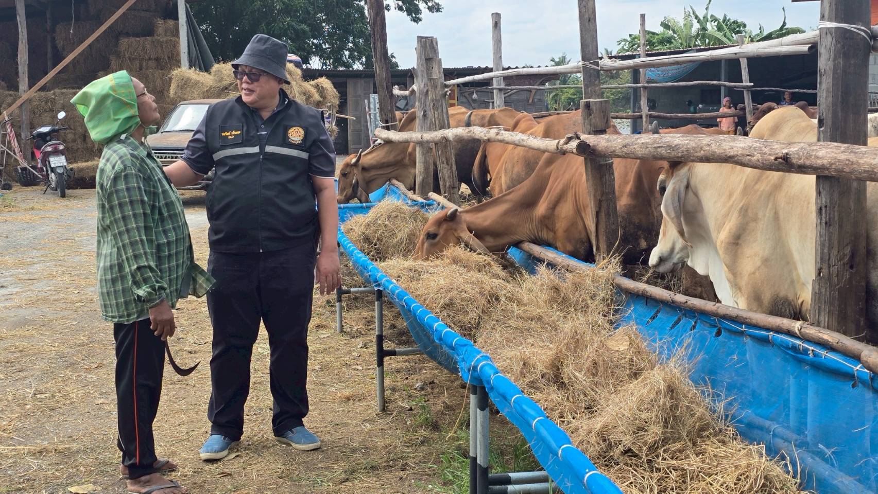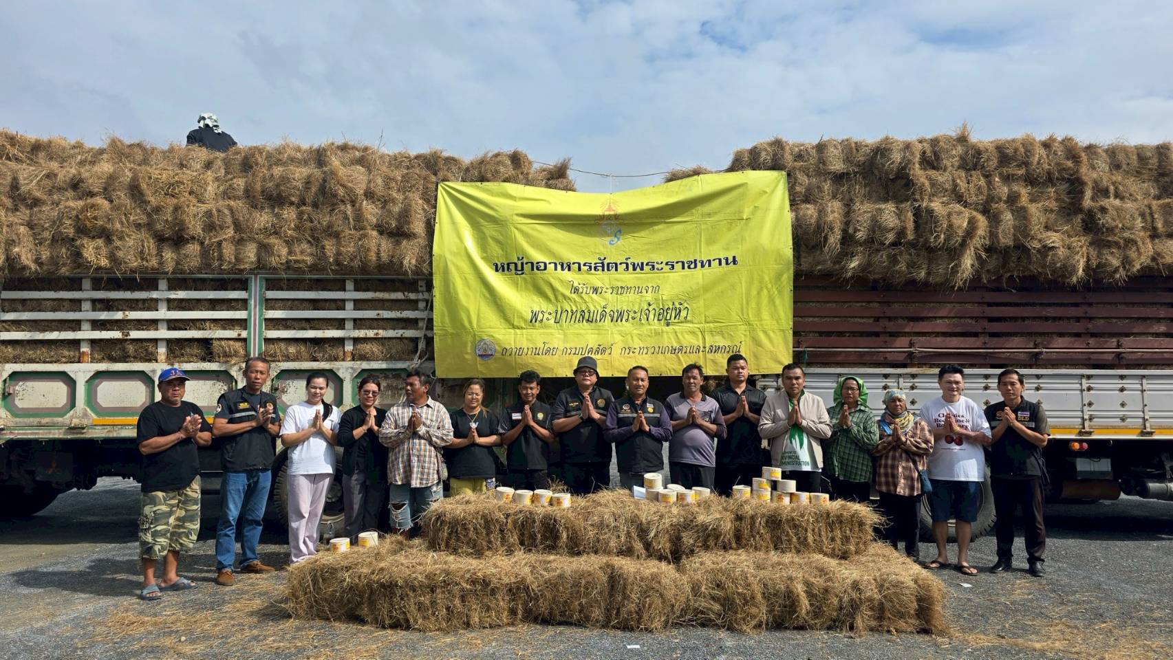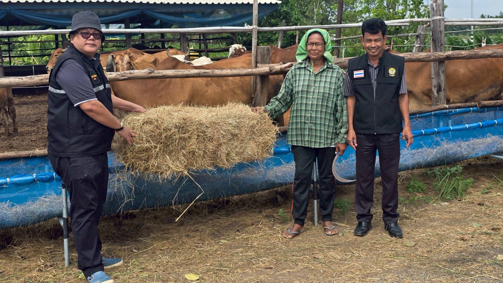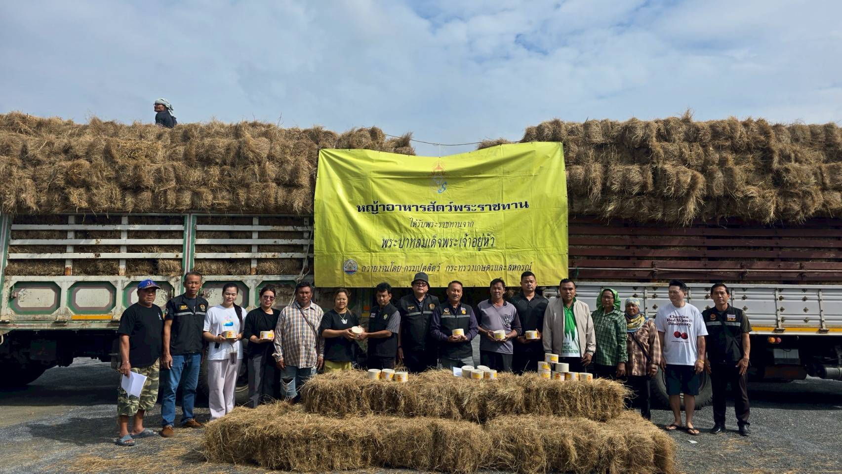 วันพุธที่ 19 พฤศจิกาย น2568 นายชัชชาย เต็งหงษ์เจริญ ปศุสัตว์จังหวัดสุพรรณบุรี มอบหมายให้นายชยวัฒน์ กลิ่นลอย หัวหน้ากลุ่มยุทธศาตร์และสารสนเทศการปศุสัตว์ และนายธีระพงษ์ จริยารังษีโรจน์ ปศุสัตว์อำเภออู่ทอง พร้อมด้วยนายณรงค์ ศรีเทพ ผู้อำนวนการศูนย์วิจัยและพัฒนาอาหารสัตว์สุพรรณบุรี และเจ้าหน้าที่ผู้เกี่ยวข้อง ร่วมส่งมอบเสบียงสัตว์พระราชทาน หญ้าแห้ง จำนวน 10,000 กิโลกรัม (500 ฟ่อน) และแร่ธาตุก้อน เพื่อช่วยเหลือเกษตรกรผู้ประสบภัยพิบัติอุทกภัย ในพื้นที่ ต.กระจัน ต.ยุ้งทะลาย ต.อู่ทอง และ ต.เจดีย์ อ.อู่ทอง จ.สุพรรณบุรี จำนวน 20 ราย โคเนื้อ รวม 284 ตัว ณ วัดจันทราวาส ม.2 ต.กระจัน อ.อู่ทอง จ.สุพรรณบุรี พร้อมเยี่ยมเยียนให้คำแนะนำการดูแลสุขภาพสัตว์เบื้องต้น โดยเกษตรกรมีความพึงพอใจเป็นอย่างมากที่ได้รับการช่วยเหลือในครั้งนี้