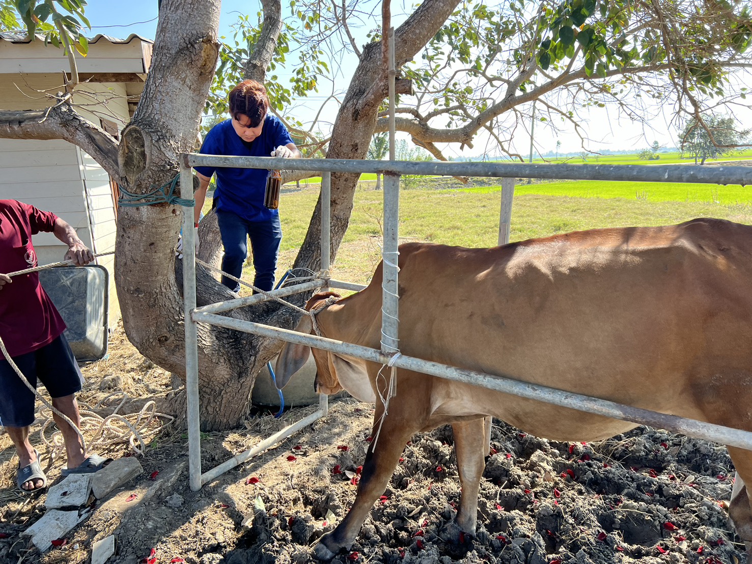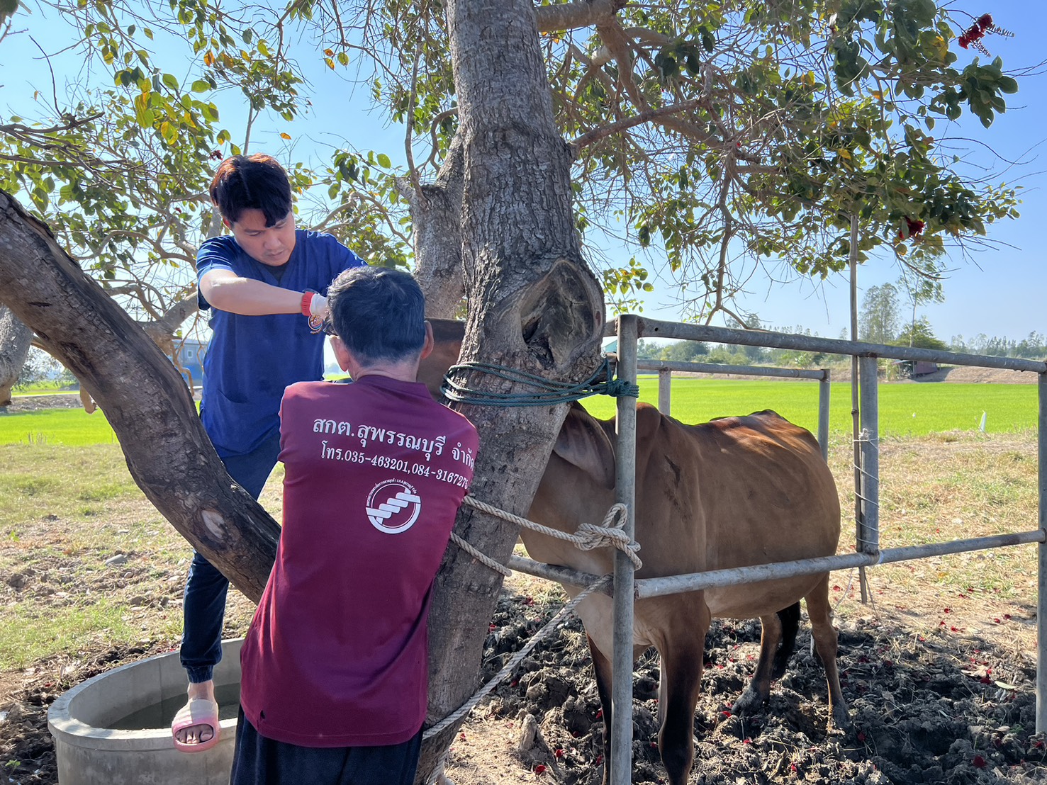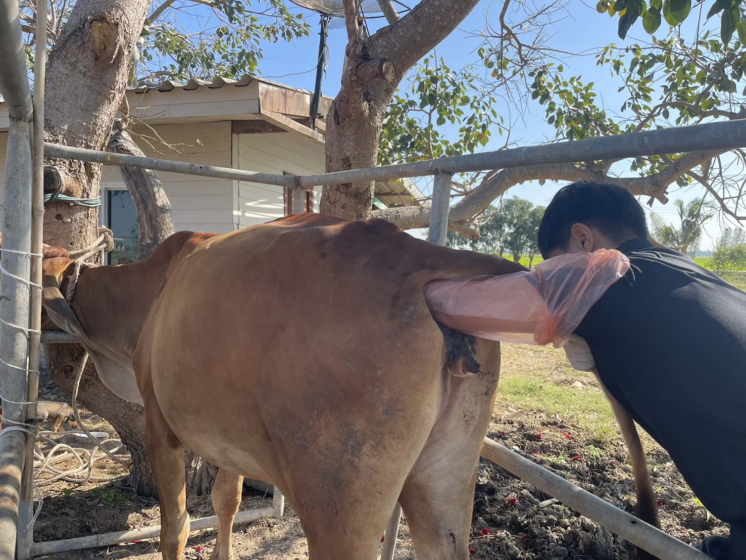 วันที่ 8 ธันวาคม 2568 นายชัชชาย เต็งหงษ์เจริญ ปศุสัตว์จังหวัดสุพรรณบุรี มอบหมายให้นายชลิต ศรีวิเชียร เจ้าพนักงานสัตวบาลชำนาญงาน รักษาราชการแทนปศุสัตว์อำเภอเดิมบางนางบวช พร้อมด้วยนางสาวลันตา สวนประเสริฐ นายสัตวแพทย์ปฏิบัติการ และเจ้าหน้าสำนักงานปศุสัตว์อำเภอเดิมบางนางบวช โดยได้รับแจ้งจากเกษตรกรผู้เลี้ยงโคเนื้อ หมู่ 9 ต.นางบวช อ.เดิมบางนางบวช จ.สุพรรณบุรี พบโคเนื้อเพศเมีย ไม่ย้ายเอื้อง มีอาการท้องอืด และสงสัยว่ามีการตั้งท้อง จึงได้ดำเนินการล้วงตรวจ และให้ยาเพื่อแก้ปัญหาอาการท้องอืด พร้อมแนะนำอาหารที่ควรให้ เพื่อลดการเกิดปัญหา